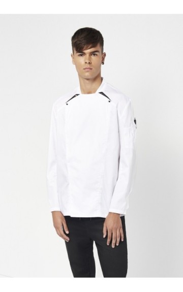 • Chaquetilla regular fit, cierre lateral con corchete oculto de rápida apertura. • Cortes en el delantero con pequeños toques de polipiel. • Cuello mao con rib que aporta mayor comodidad al usuario. • Puño de las mangas con rib elástico, que aporta mayor comodidad para remangarse. • Bolsillo en la manga compartimentado. • Trabilla en la parte de atrás del cuello “para sujetar el delantal”. • Mangas combinadas con tejido de malla transpirable para aportar mayor confort. • Espalda con cortes en forma de M súper deportiva y con tejido de malla para mejorar la transpirabilidad del usuario y dando un extra de confort al realizar movimientos. • Costuras sobrecargadas para mayor resistencia.